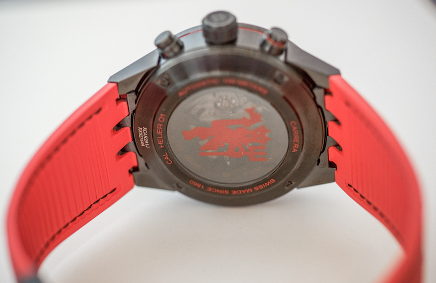 The red-colored luminant on the hands and hour markers looks pretty slick and helps with legibility. Though, the reality of these darker color luminant materials is that they don’t glow as brightly in the dark compared to lighter colored Super-LumiNova. Overall I think this is an attractive version of the Luxury Tag Heuer Watches, and its relationship to Manchester United simply adds personality.